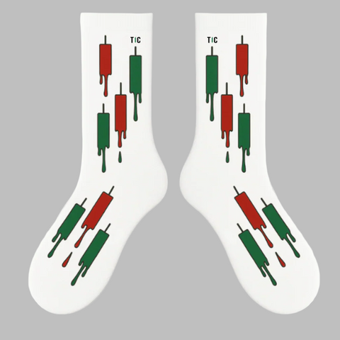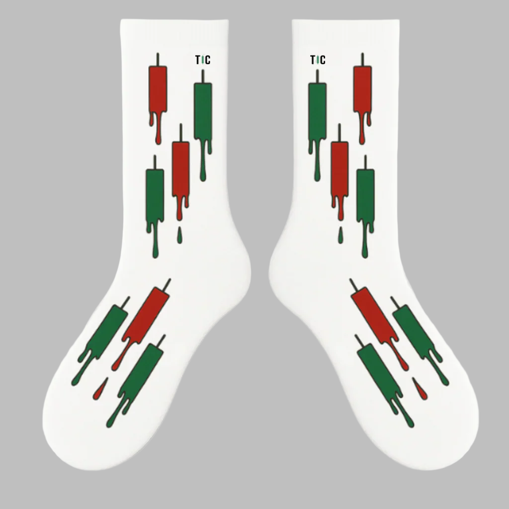The Candle Drip™ Socks are made for traders who live, breathe, and walk the markets. Featuring bold green and red candlestick patterns dripping down like market volatility, these socks are a statement — not just style.